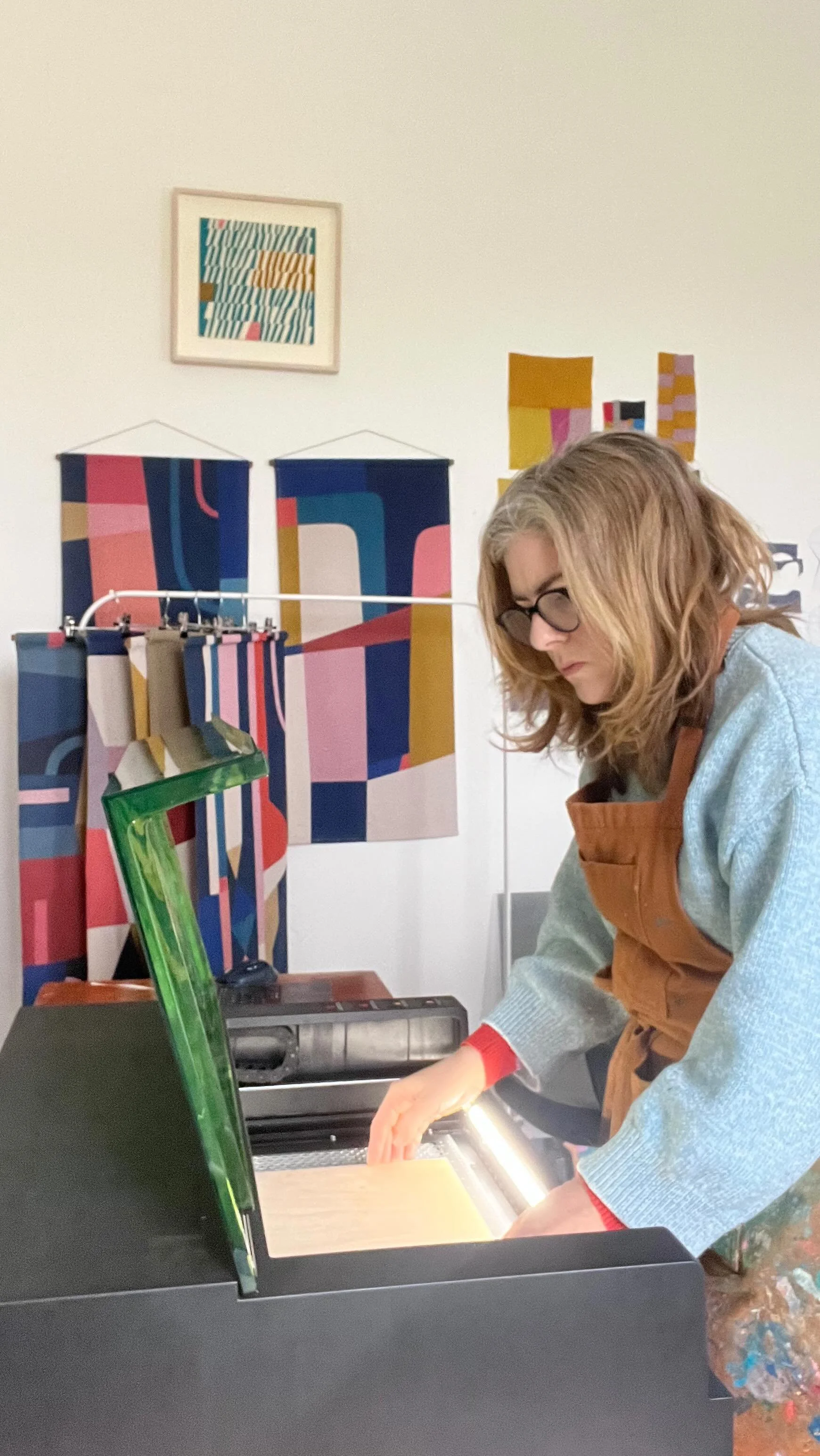 With a background in printed textiles, linen is also central to my practice. I have developed a signature collection of handmade linen wall hangings, produced in collaboration with the social enterprise We Make Good.
